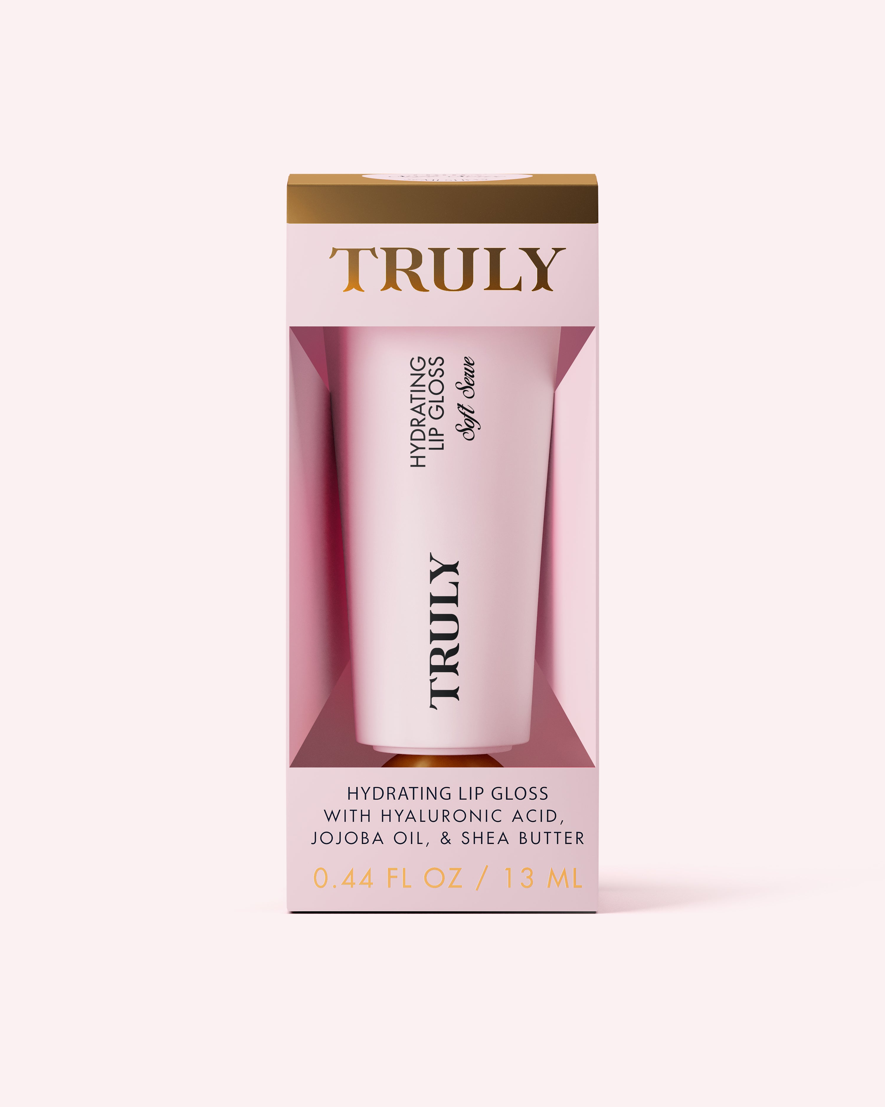 Sheer rosy pink tint meets high-shine hydration! Infused with hyaluronic acid, jojoba oil & shea butter, Soft Serve Lip Gloss delivers ultra-soft, luscious lips with a glass-like shine and juicy strawberry scent.
